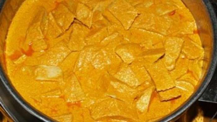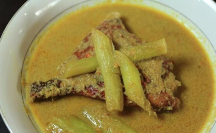 Kuliner tradisional Jambi ini merupakan perpaduan antara tepek ikan yang sekilas mirip pempek Palembang dipadukan dengan kuah gulai, menciptakan citarasa kaya rempah ala masakan Nusantara.