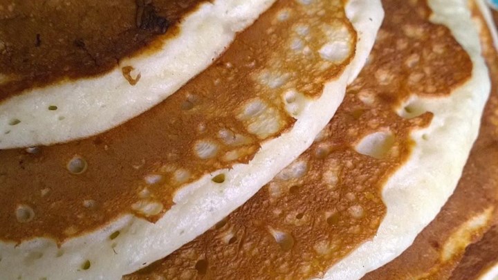 - Tuang atau sendok adonan ke atas wajan, gunakan sekitar 1/4 cangkir untuk setiap pancake. Coklat di kedua sisi dan sajikan panas.