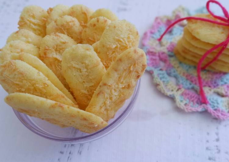 Masukkan adonan ke dalam piping bag lalu semprot ke loyang khusus lidah kucing. Taburi keju parut di alas