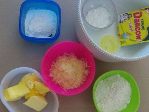 Tepung terigu, maizena dan susu bubuk di ayak jadi 1 dulu ya. Turunkan mixer kecepatan ke rendah. Masukkan tepung terigu, maizena dan susu bubuk. Aduk rata. Aduknya asal tercampur rata aja ya