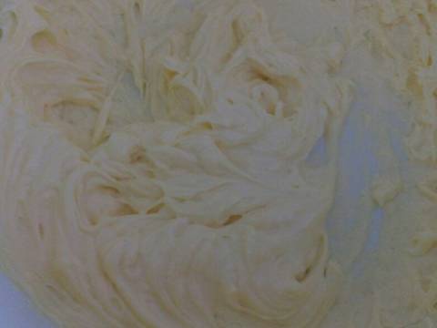 Mixer dengan kecepatan sedang + mentega / margarin hingga mengembang dan putih pucat
