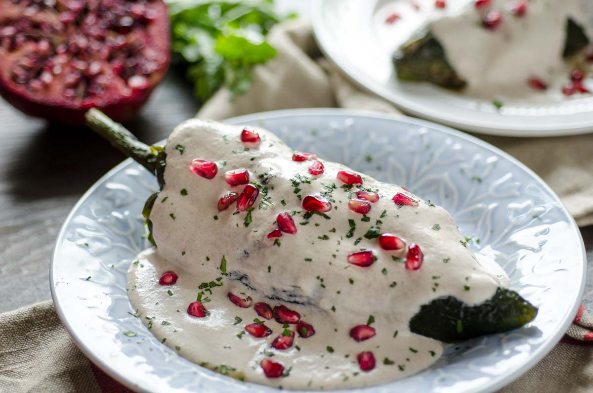 Menawarkan tiga warna bendera Meksiko, chiles en nogada adalah salah satu hidangan paling patriotik di Meksiko. Cabai Poblano diisi dengan picadillo (campuran daging cincang, buah-buahan dan rempah-rempah) mewakili hijau pada bendera, saus krim berbasis kenari adalah putih dan biji delima adalah merah. Berasal dari Puebla, sejarah menceritakan bahwa hidangan itu pertama kali disajikan kepada Don Agustin de Iturbide, pembebas dan Kaisar Meksiko berikutnya.