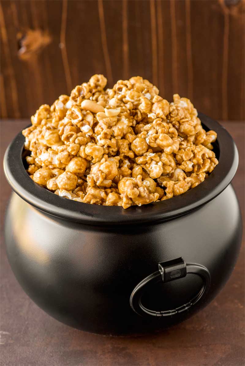 - Setelah matang, angkat dan segera tuang terkulai ke popcorn yang masuk dalam wadah besar.